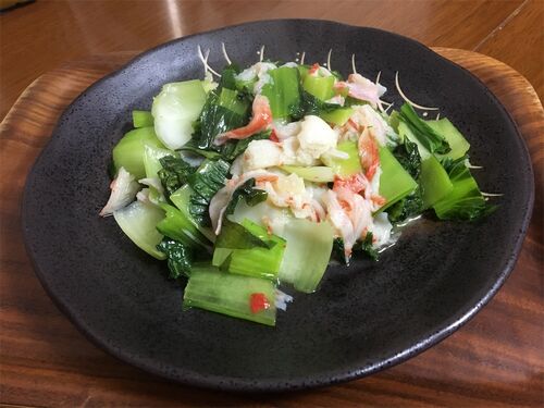 簡単にできるのが一番❗️ 『青梗菜カニ炒め』 フライパンに、ごま油を入れ、青梗菜とカニカマを入れ、火を弱火で付けて、蓋をして蒸し焼き 味付けは、ウエーパと塩胡椒 水溶き片栗粉で、少しだけとろみをつける 『十六島のりと鯛のお吸い物』 貴重な海苔なん…