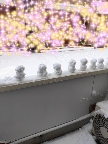 朝目が覚めたら 旦那:「凄い雪❄️積もってるよ」と でも、寒いから布団から出れない、すずっぺと私 ちょっとしてから、リビングに行くと すずっぺ:「お父さんが居ないーー」 外を見ると、雪かきして、雪だるま⛄️作っていました。 ベランダに小さな雪だる☃️ 可…