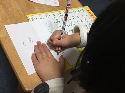 字をみては ひらがなを読んでいます。 少しづつ、ひらがなが読めるようになったなーって思っていたら なんと、ひらがなを書きたい❗️という意欲が湧いてきましわ。 初めは、字をみながら真似して描いてましたが… すずっぺ:「うまくいかない」と で、この方法…