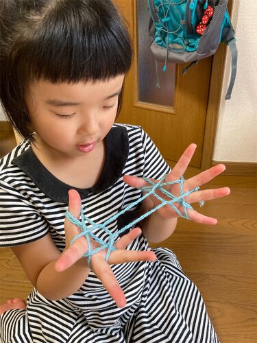 あやとりは、取り合うのはできるようになってましたが… 1人あやとりは、ほうきぐらいしか出来なかったです。 すずっぺ:「他のはどうやってやるの?」 で、30分かけて、何度も何度もゆっくりやり教えていたら 出来ましたー。 【ゴムゴム】正式名称はなんだろ…