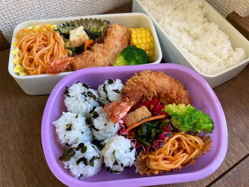 次女の好きな海老フライ たらこ入り卵焼き おくら胡麻和え とり照り焼き はんぺんチーズマヨ焼き ネギ入り卵焼き マカロニケチャップ 豚の生姜焼き すみっこかまぼこ 里芋煮っ転がし 大豆とひじき煮 きゅうりの酢の物 豚と野菜のさっと煮 最近アンケートに答…