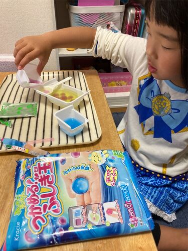 実験みたーい なかなか、面白いお菓子を発見 どーしてもやりたいと、購入しました。 かなりの実験っぽく 楽しんでいましたわ 最近こんな、作るお菓子がたくさんあります。 味は、当たり外れあるけどね。 テスト期間中で早く帰宅したはなっぺと「寿司食べるか…
